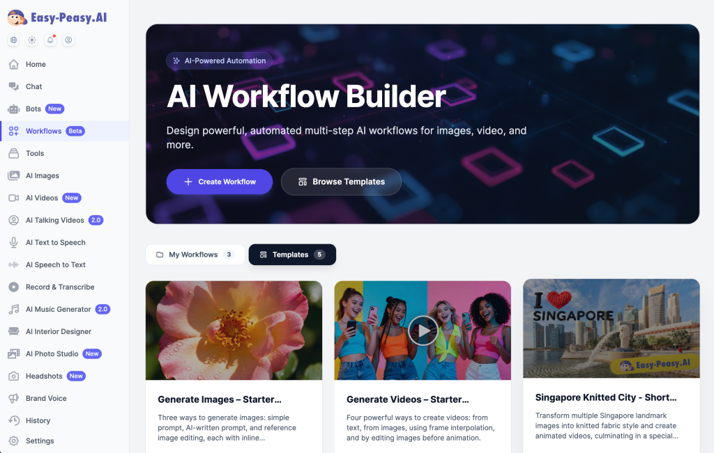 Transform your photos into magical animated videos with unique artistic styles using Easy-Peasy.AI’s powerful workflow automation. This step-by-step guide shows you how to recreate the viral “Knitted City” video effect – and adapt it for any style or subject!