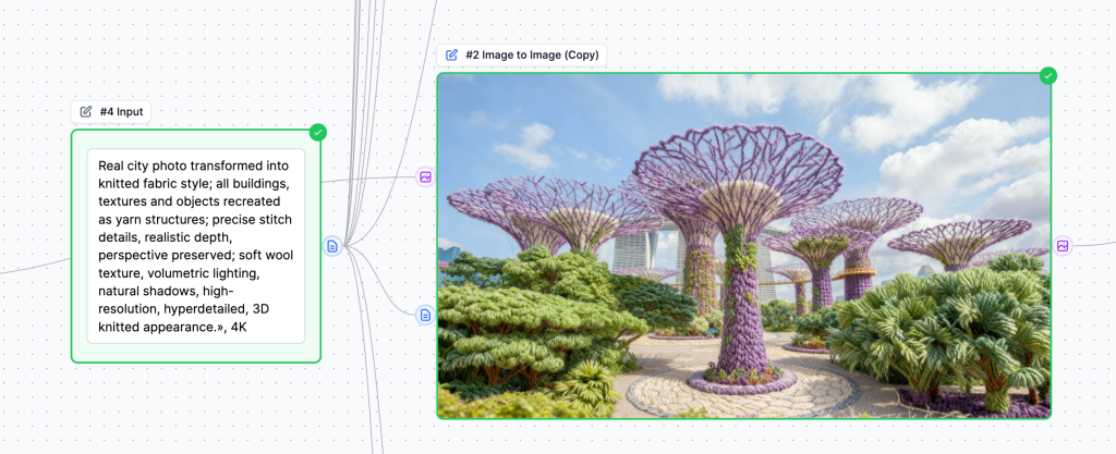 - Connect the prompt: Drag the text output from your Input node to the prompt input of the Image to Image node