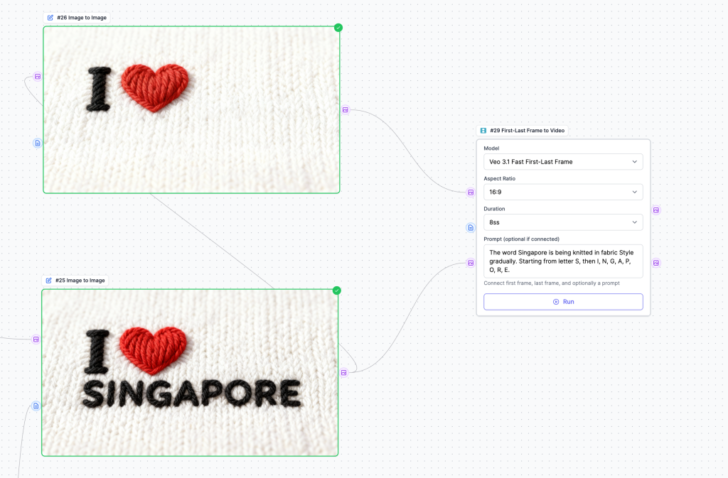 - Model: Veo 3.1 Fast First-Last Frame