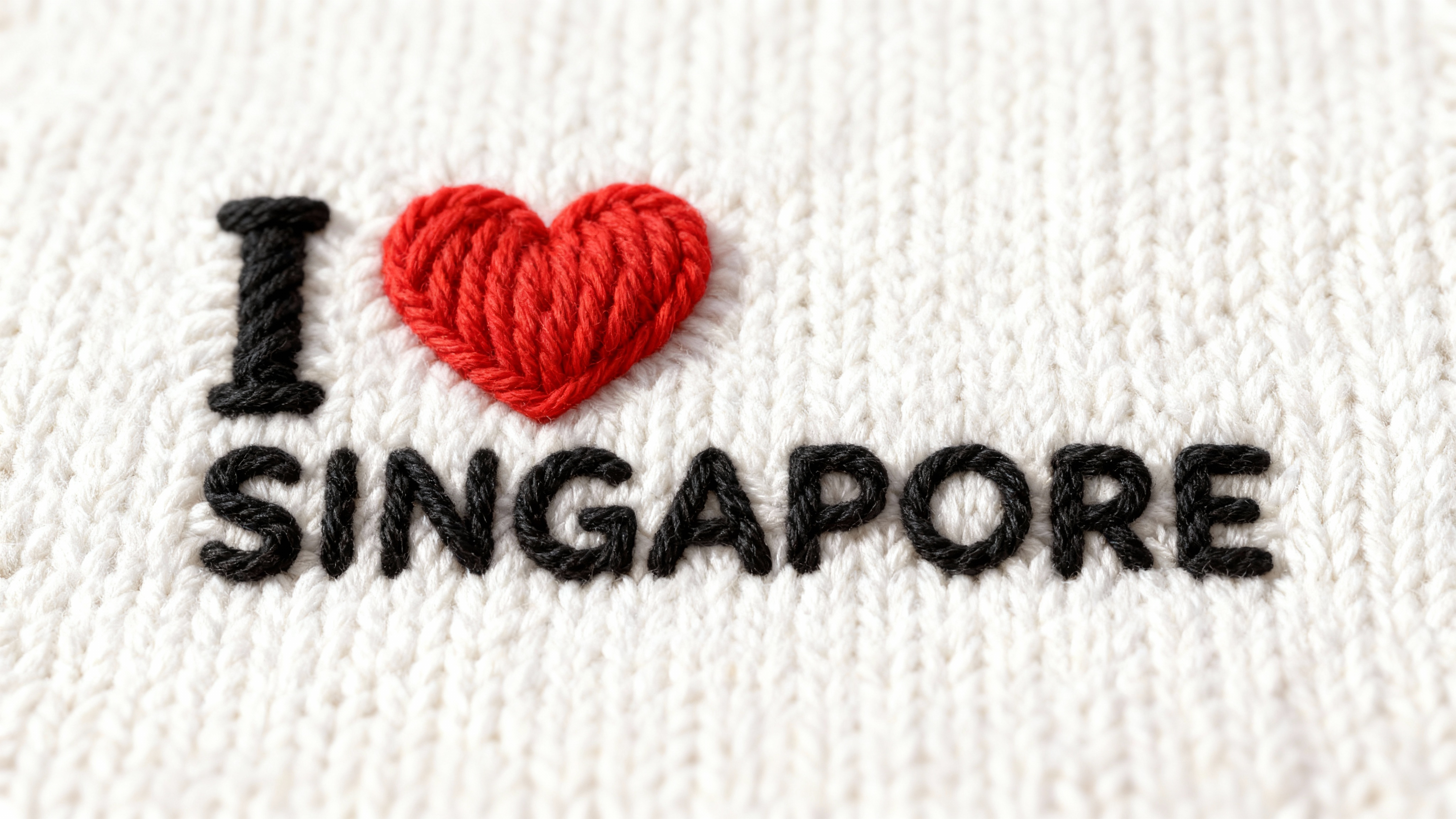 The word Singapore is being knitted in fabric Style gradually. Starting from letter S, then I, N, G, A, P, O, R, E.